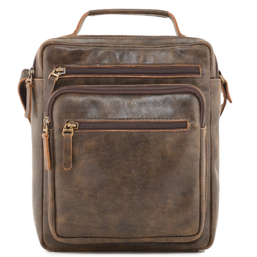 Кожаная сумка "Гектор" – небольшая, но вместительная мужская сумка. Практичная повседневная модель с удобными карманами внутри и снаружи.