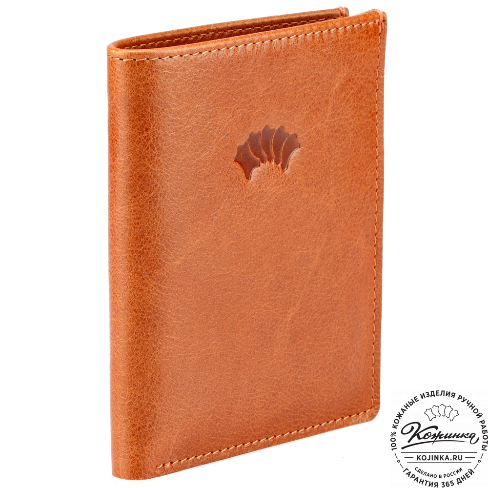 Кожаное портмоне "Россия" - небольшой удобный бумажника с отделением для купюр и отсеками для пластиковых карт.