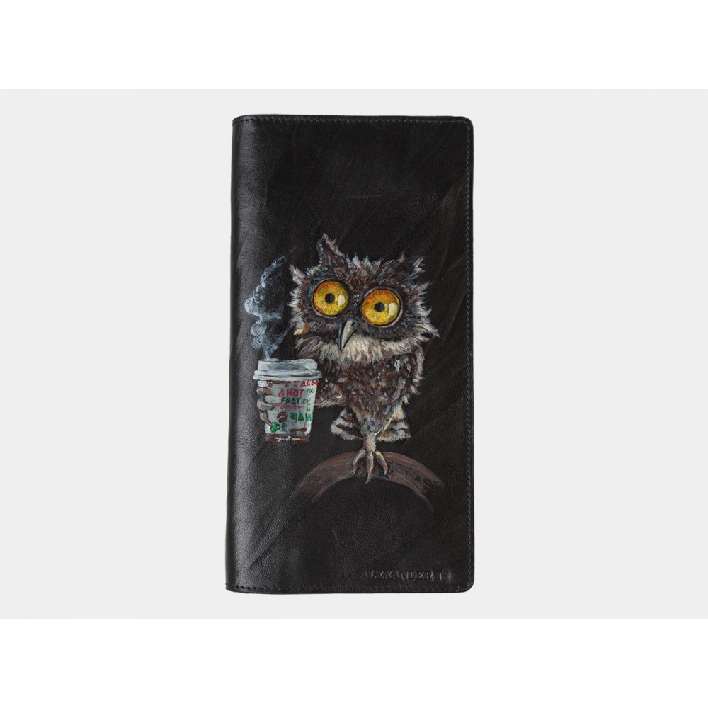 Кожаное портмоне "Утренняя сова" - вместительное портмоне с ручной росписью.
