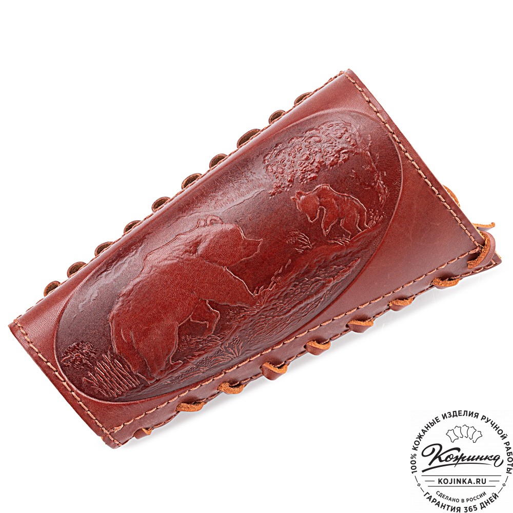 С одной стороны выполнено тиснение на охотничью тему.