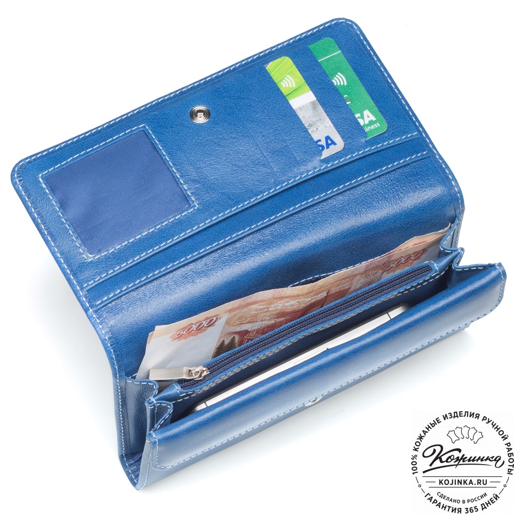 Кожаное портмоне "Франция" (синее) – элегантная и лаконичная модель, которая понравится любителям классических кожаных аксессуаров.