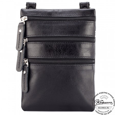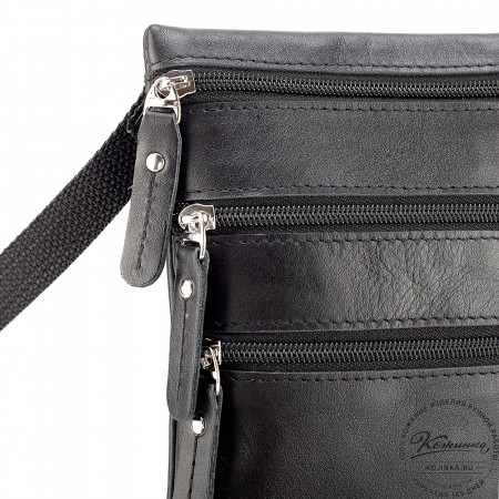 Кожаная сумка "Говард" (чёрная) - интересная, легкая и стильная сумка для людей с активным образом жизни. Универсальная модель унисекс, которая подойдет к любому стилю и гардеробу!
