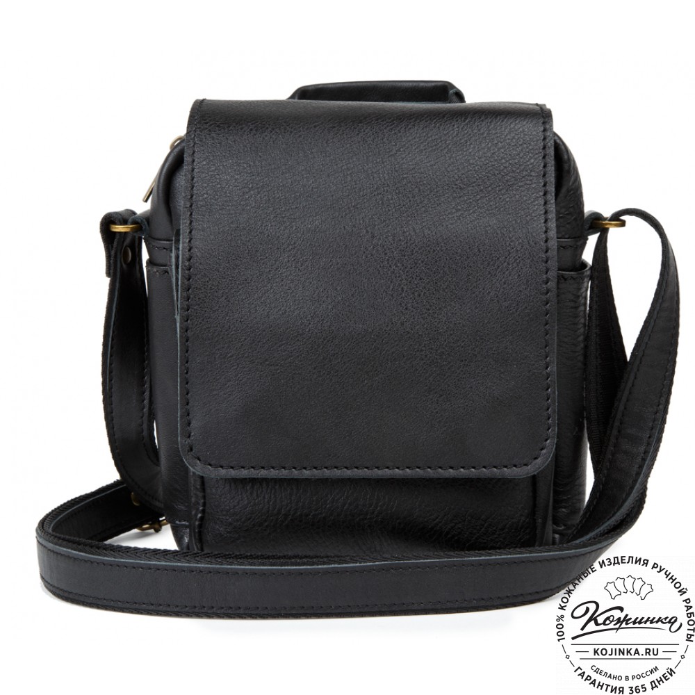 Кожаная сумка через плечо "Шерлок" (черная) - небольшая вместительная сумка, когда мужчина носит с собой только портмоне, телефон, ключи и небольшие мелочи.