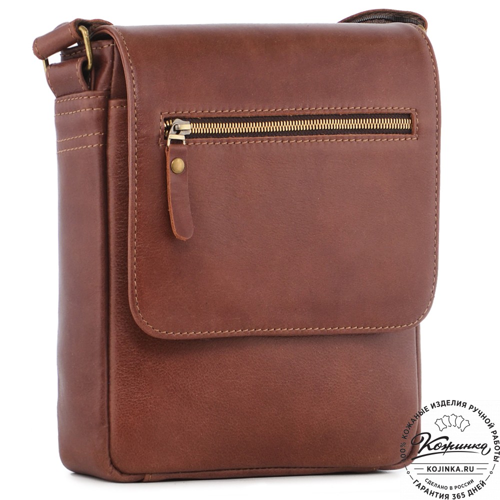 Кожаная сумка "Вильнюс" – классическая мужская сумка через плечо. Удобная и практичная модель средних размеров с карманами внутри и снаружи.
