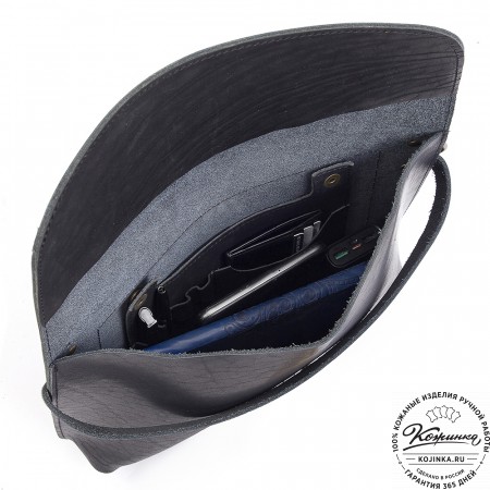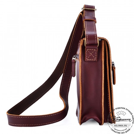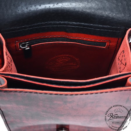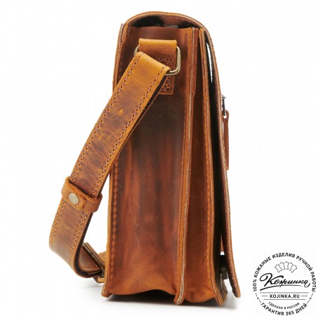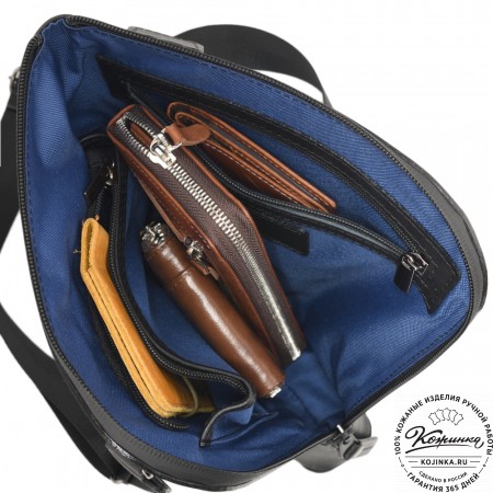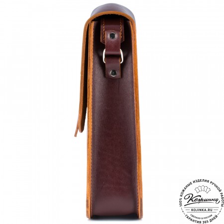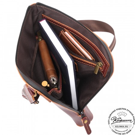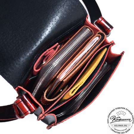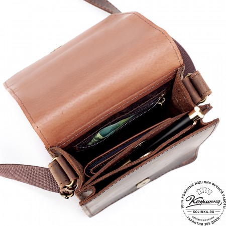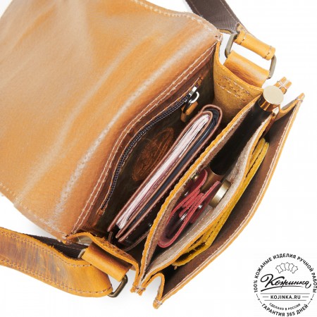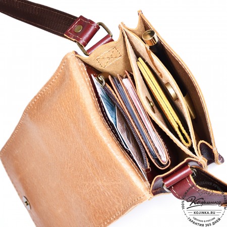 Сумка жесткой формы изготовлена из качественной толстой кожи.