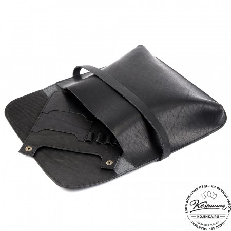 Кожаный плечевой ремень съемный, регулируется по длине.