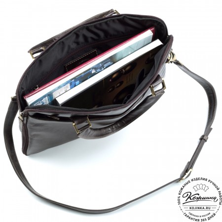 В портфеле два отделения для бумаг, документов или ноутбука с диагональю до 13 дюймов.
