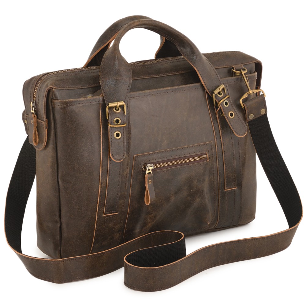 Кожаная сумка "Доминик" - удобная деловая сумка с функциональностью портфеля. Выглядит солидно и внушительно, но менее официально, чем портфель.