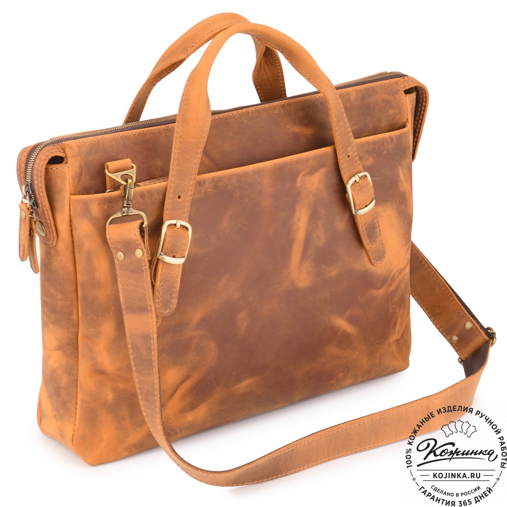 Кожаная деловая сумка "Франклин" (рыжий крейзи) - дорого и стильно на каждый день!