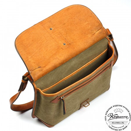 Внутри портфеля три отделения. Среднее из них закрывается на молнию.