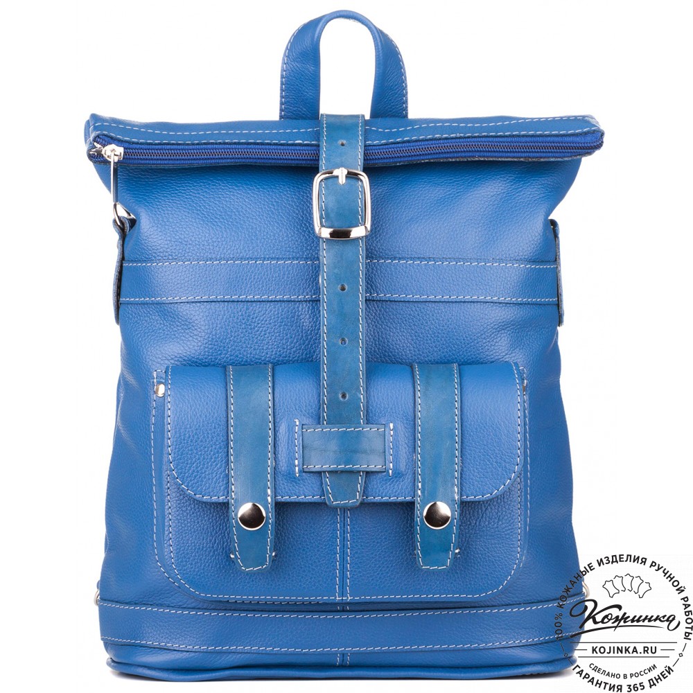 Кожаная сумка-рюкзак "Сан-Тропе" (голубой) - яркий, стильный и функциональный рюкзак небесно - голубого цвета, выполнен из мягкой кожи европейского качества.