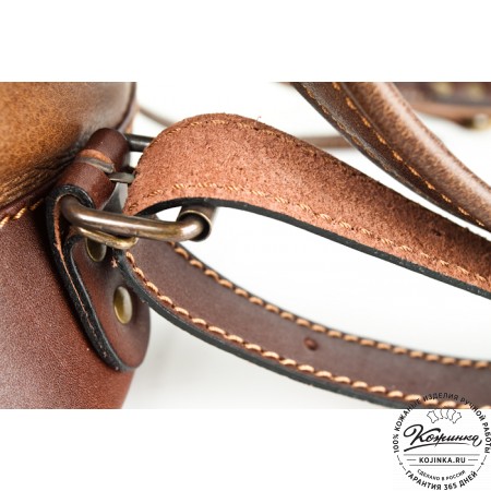 У рюкзака широкие мягкие лямки из кожи, которые комфортно ложатся на плечи. Лямки регулируются по длине. Есть кожаная ручка для ношения в руке.