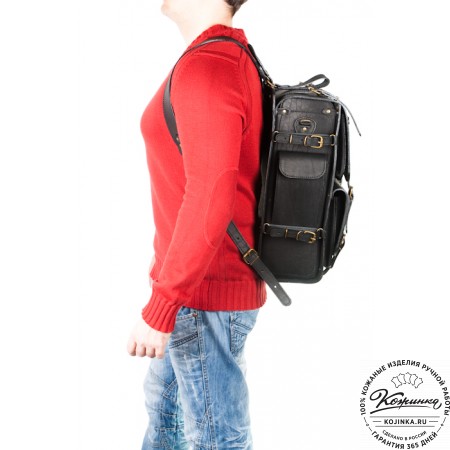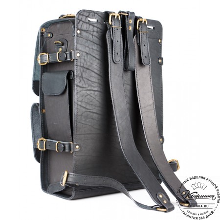 Классический рюкзак из толстой прочной кожи. Также безупречный и классический во всех отношениях чёрный цвет кожи.