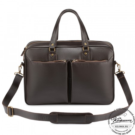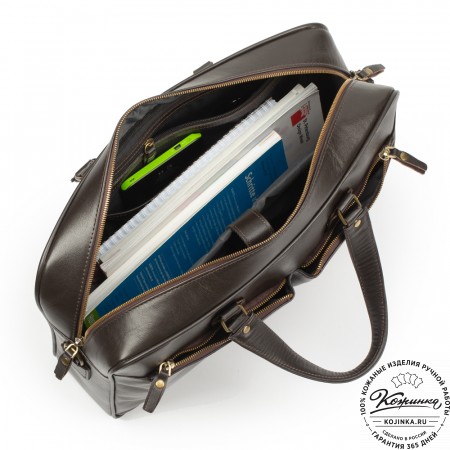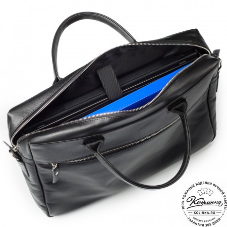 В портфеле два отделения для бумаг, документов или ноутбука с диагональю 13 дюймов.