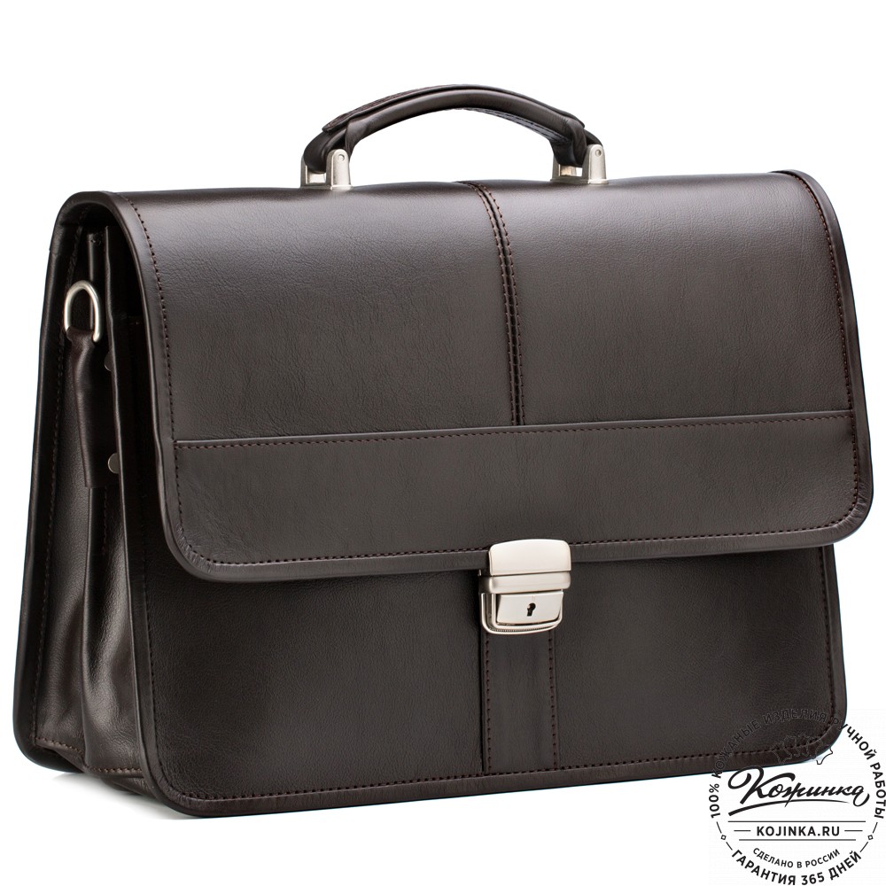 Портфель изготовлен из высококачественной натуральной кожи и прочной фурнитуры.