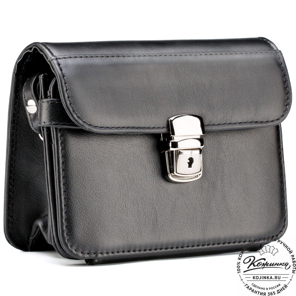 Кожаная барсетка "Гевара" (черная) - маленькая, но вместительная барсетка, которую можно носить не только в руках, но и на ремне, как поясную сумку!
