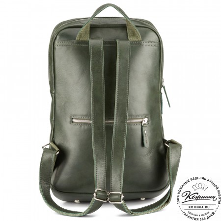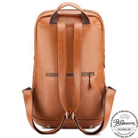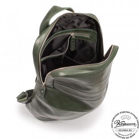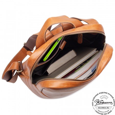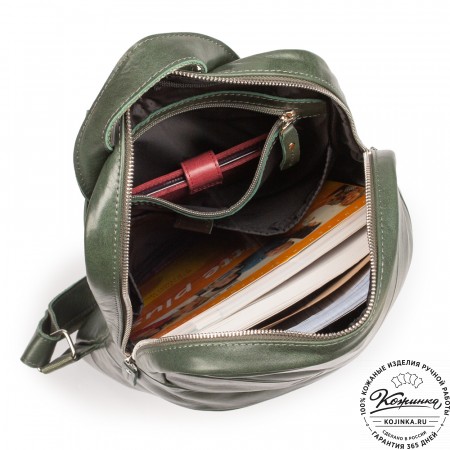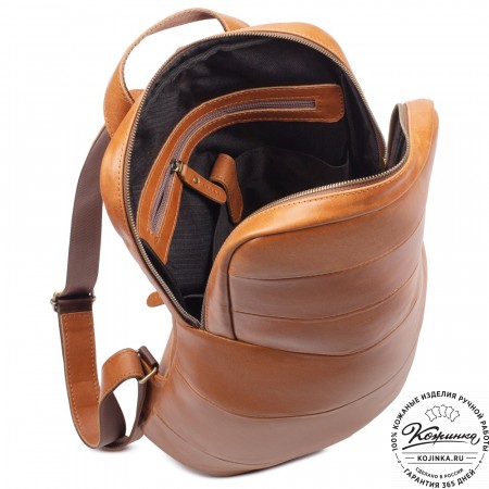 На модели представлен рюкзак "Селена" из нубука коричневого цвета.