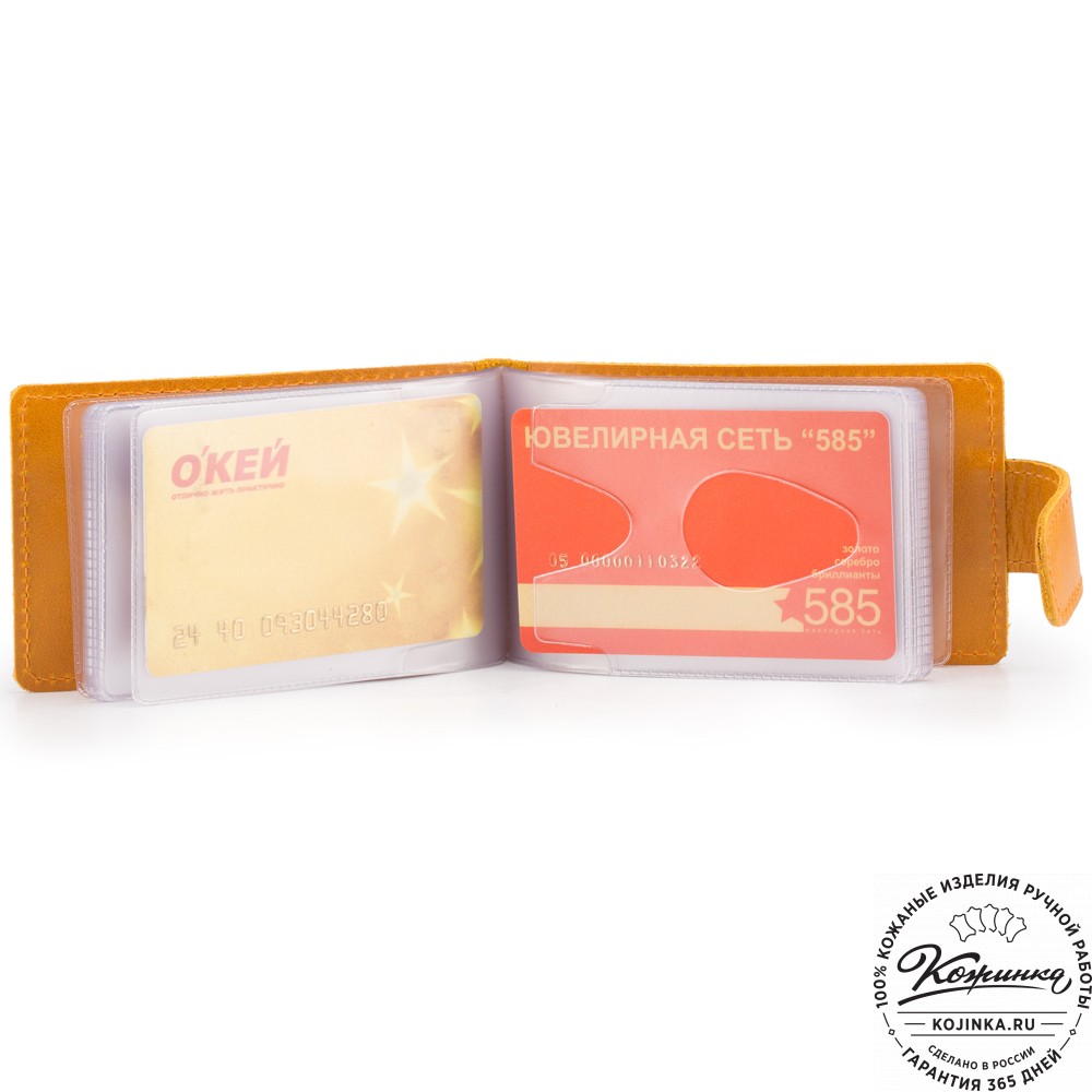 Кожаная визитница Одесса (жёлтая) - и все скидочные карты на месте!