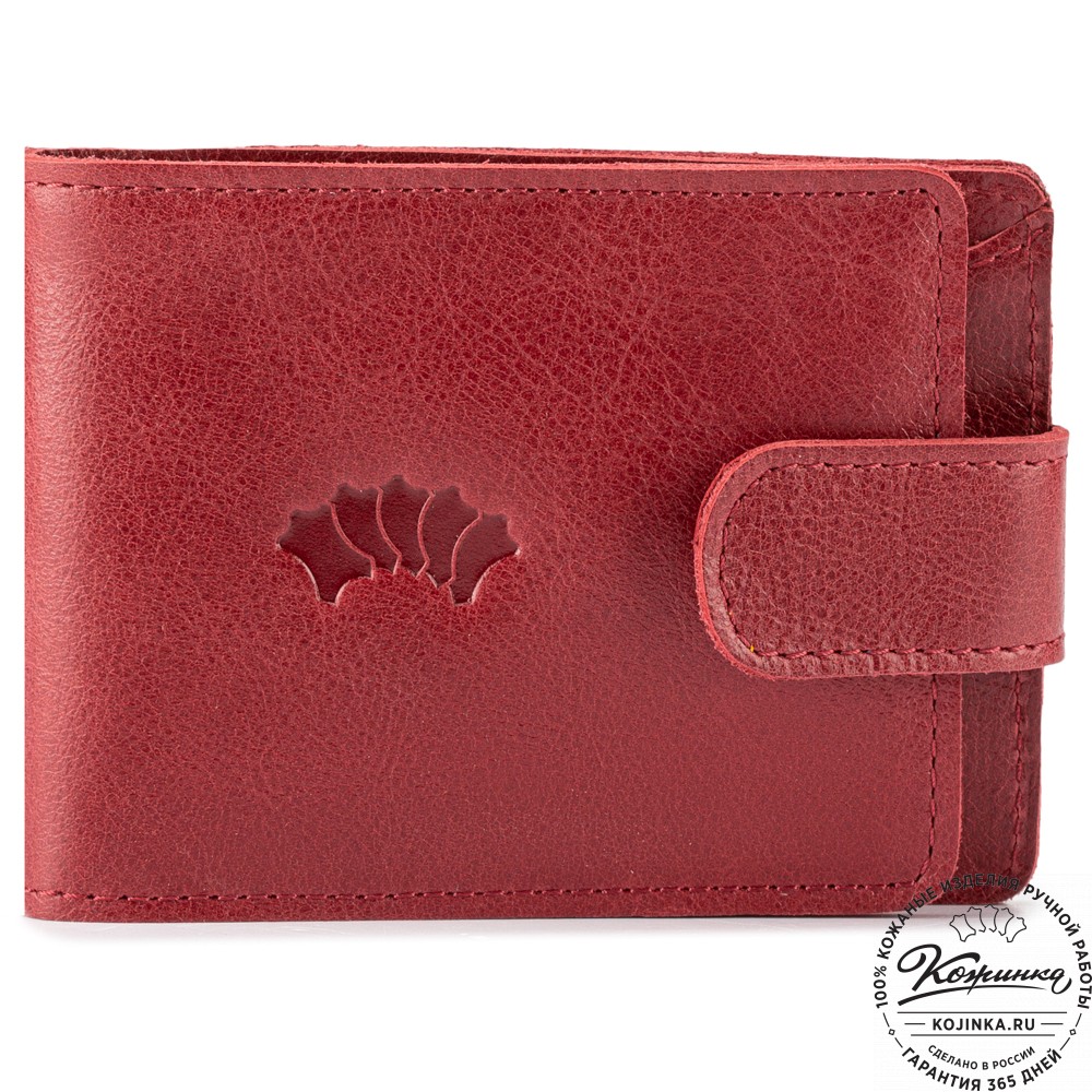 Портмоне Италия, как и вся коллекция, выполнено в мягкой, но достаточно толстой коже высокого качества. Фиксируется в закрытом состоянии на хлястик с кнопкой.
