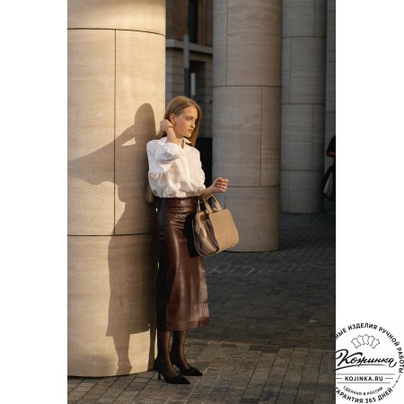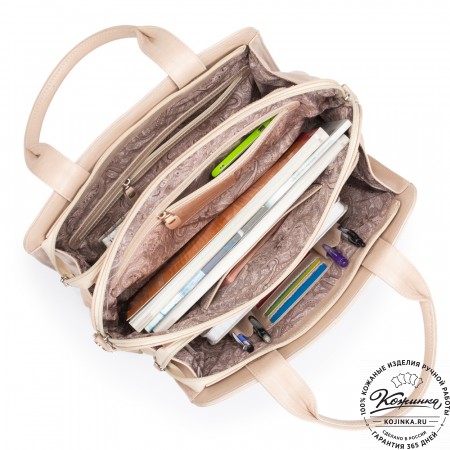Сумка изготовлена из мягкой натуральной кожи высокого качества. Подкладка внутри выполнена из прочной ткани с узором.