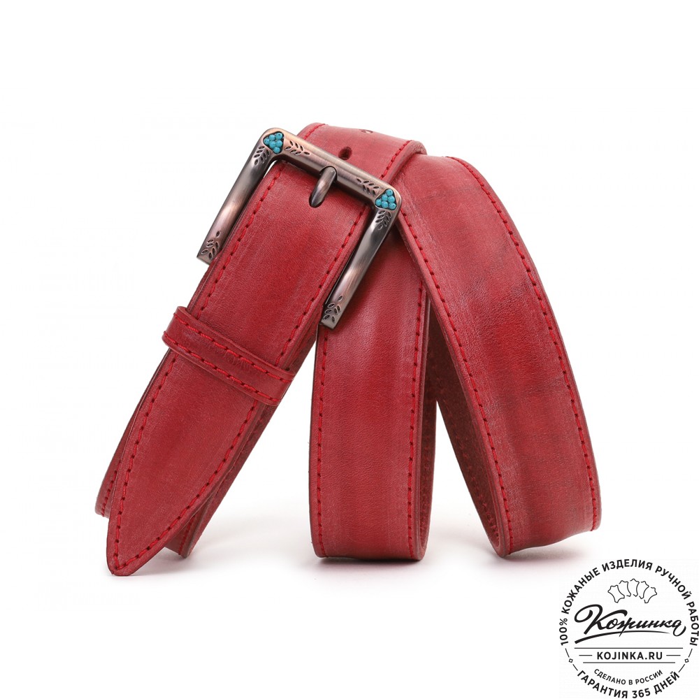 Кожаный ремень "Ирис" (красный) - женский ремень с красивой пряжкой.