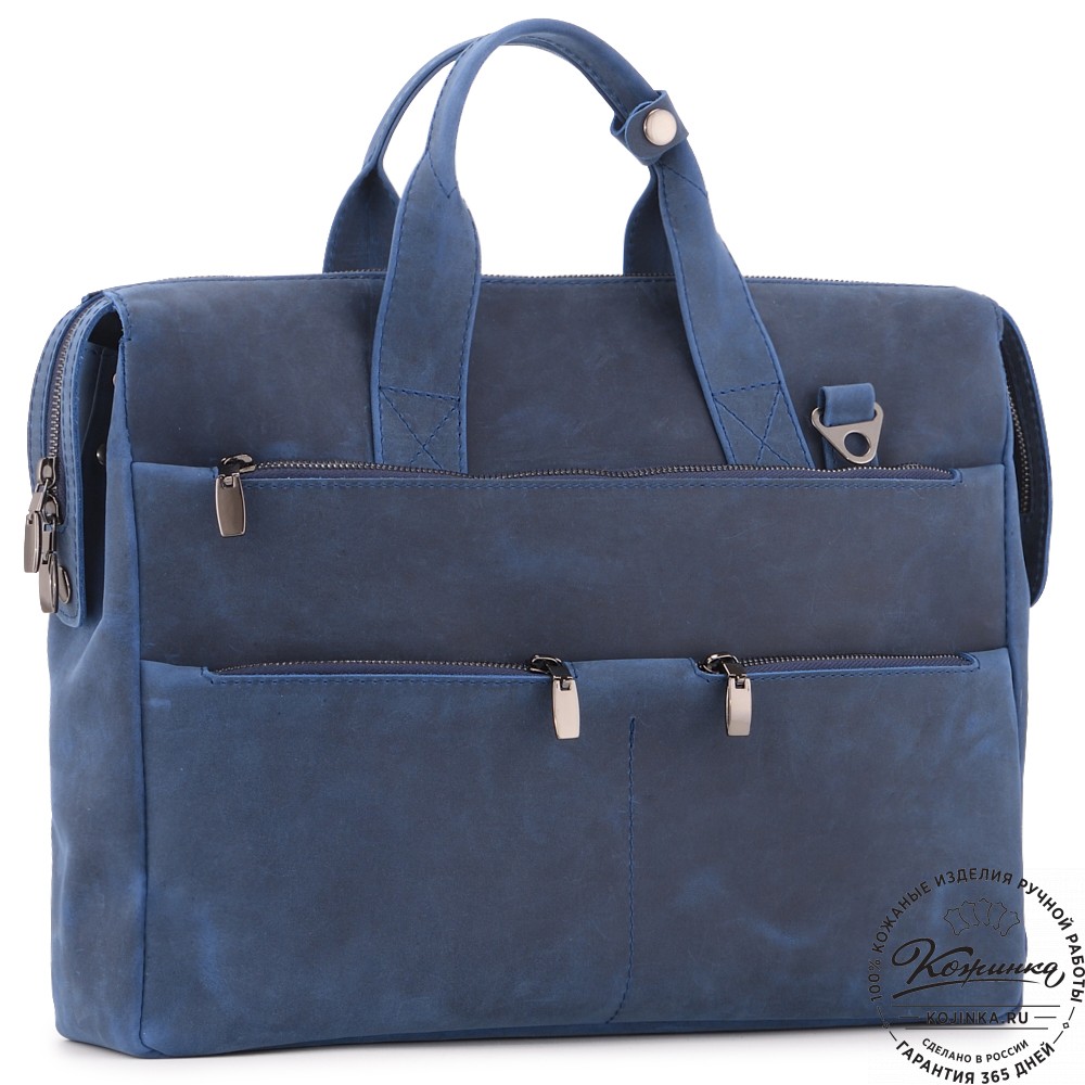 Кожаная деловая сумка "Марк" (синий крейзи) - вместительная и удобная сумка для современного мужчины на каждый день.