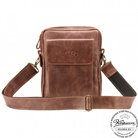 Кожаная сумка через плечо "Митчел мини" (темно-коричневая антик)) – небольшая, удобная сумка через плечо из натуральной кожи.