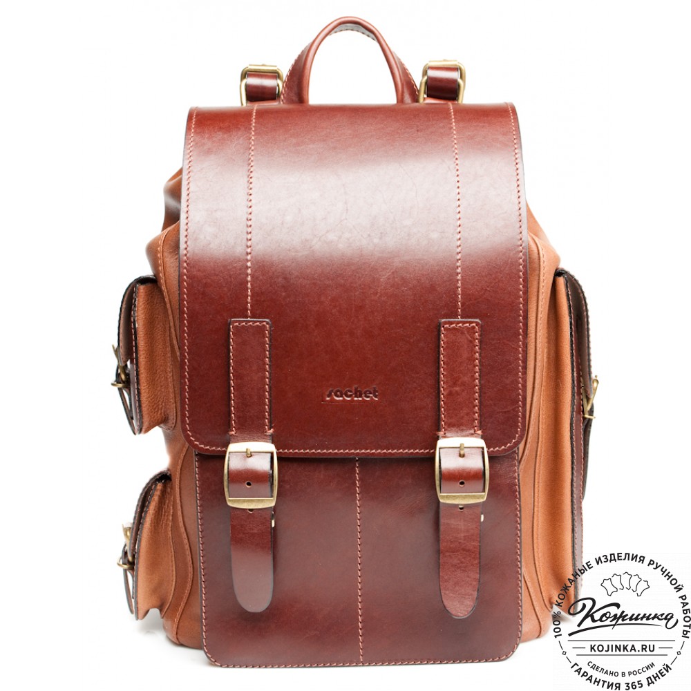 Клапан и карманы рюкзака выполнены из жесткой натуральной кожи темно-коричневого цвета, а тело рюкзака - из мягкой светло-коричневой кожи - именно поэтому рюкзак выглядит так дорого и добротно.