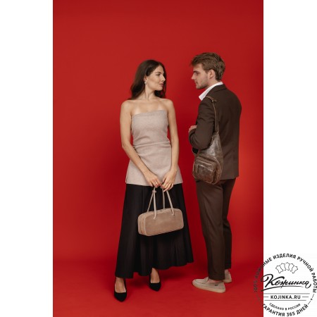 Женская кожаная сумка "Тойс" (темно-бежевая)